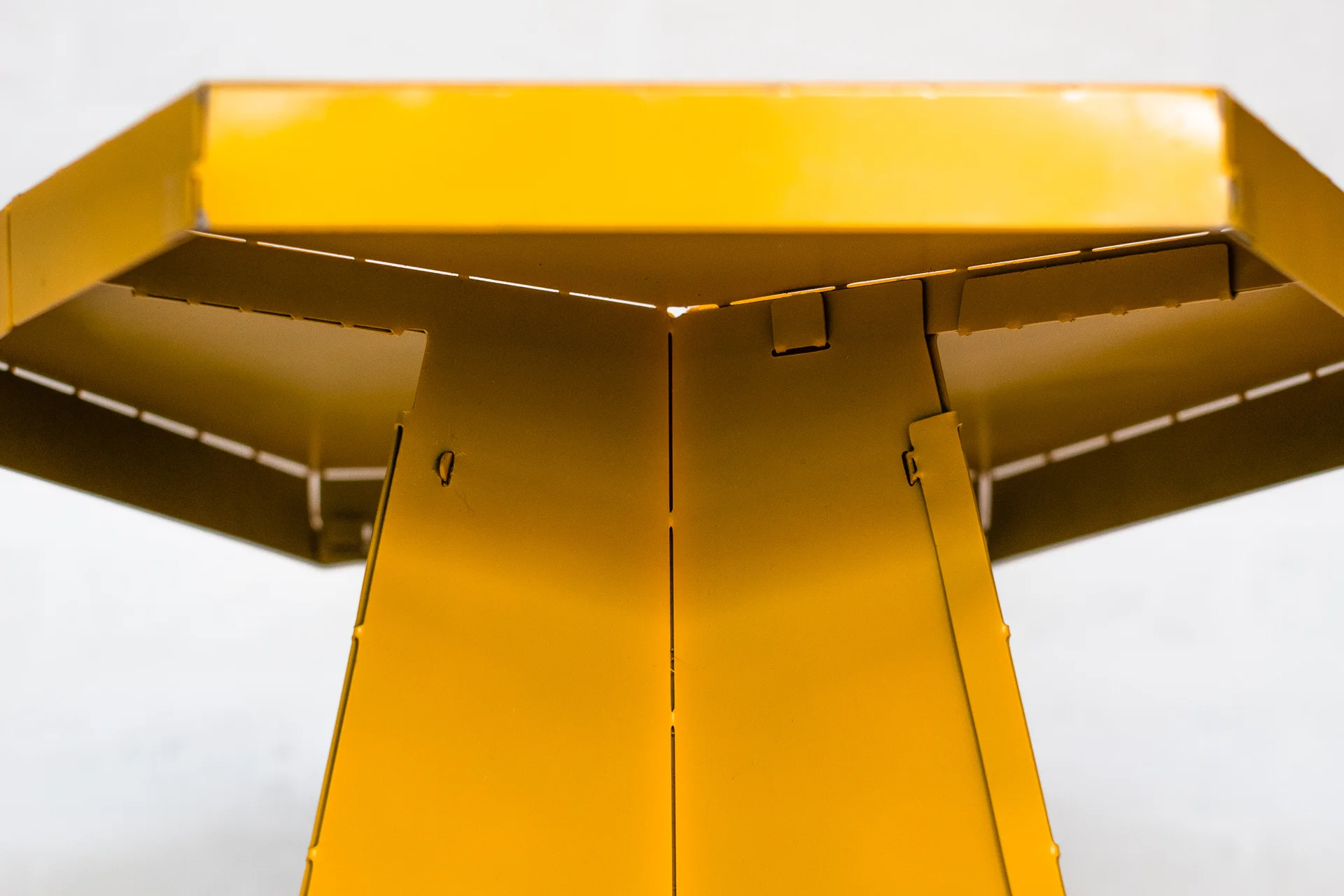 In een wereld gedomineerd door meubels die op elkaar lijken, hebben wij een “DIY” tafeltje ontworpen. Deze kunt u naar eigen wens een likje verf geven, zodat de tafel in uw interieur past. De bijzettafel bestaat uit drie identieke onderdelen. De onderdelen vouwen in elkaar om zo tot het eindresultaat te komen. Deze bijzettafel is in samenwerking met Maarten Smit ontworpen.